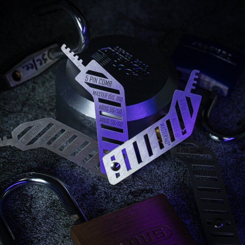 While many locks that can be combed have different pin spacing and depths, the Ergo Combs were specifically designed to open the most common locks that are vulnerable to comb picking, maximizing its capability, speed of use, and efficiency.  Furthermore, each comb has the make and model of vulnerable locks on the handles for easy reference.